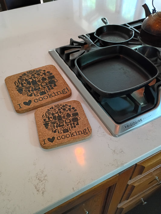 I Love Cooking Cork Trivet Set